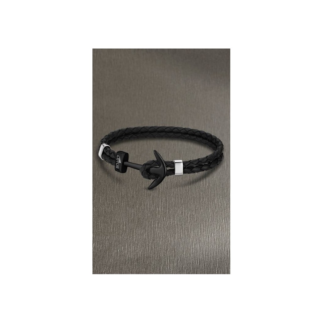 PULSERA LOTUS STYLE PARA HOMBRE CON ANCLA EN ACERO INOXIDABLE NEGRO Y CUERO TRENZADO.