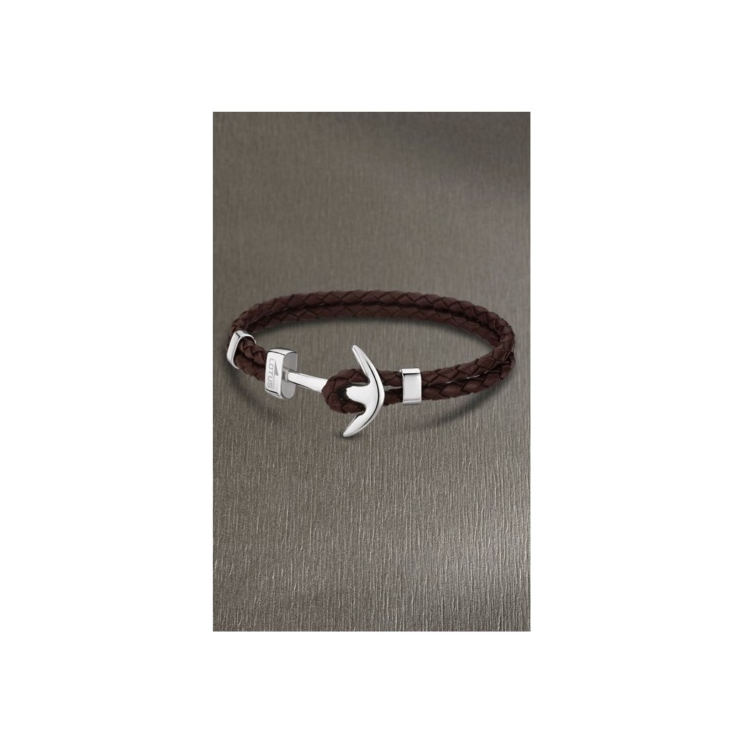 PULSERA LOTUS STYLE PARA HOMBRE CON ANCLA EN ACERO INOXIDABLE  Y CUERO TRENZADO.