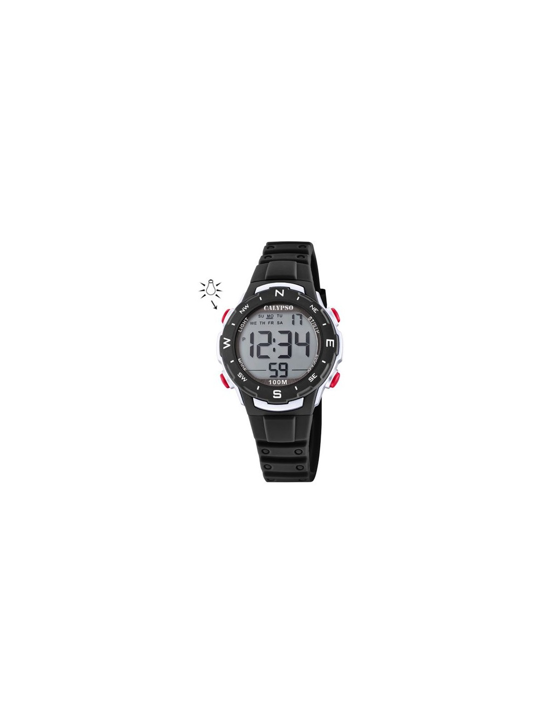 RELOJ CALYPSO DIGITAL NEGRO RESISTENTE AL AGUA 100 METROS.