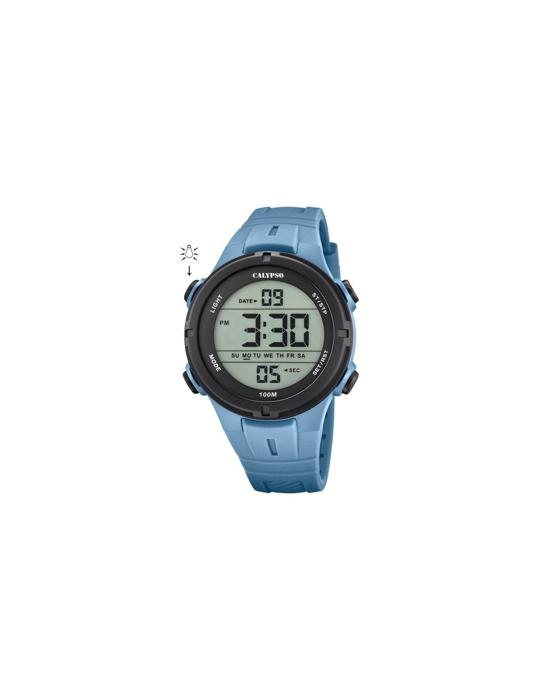RELOJ CALYPSO DIGITAL CELESTE/NEGRO RESISTENTE AL AGUA 100 METROS.