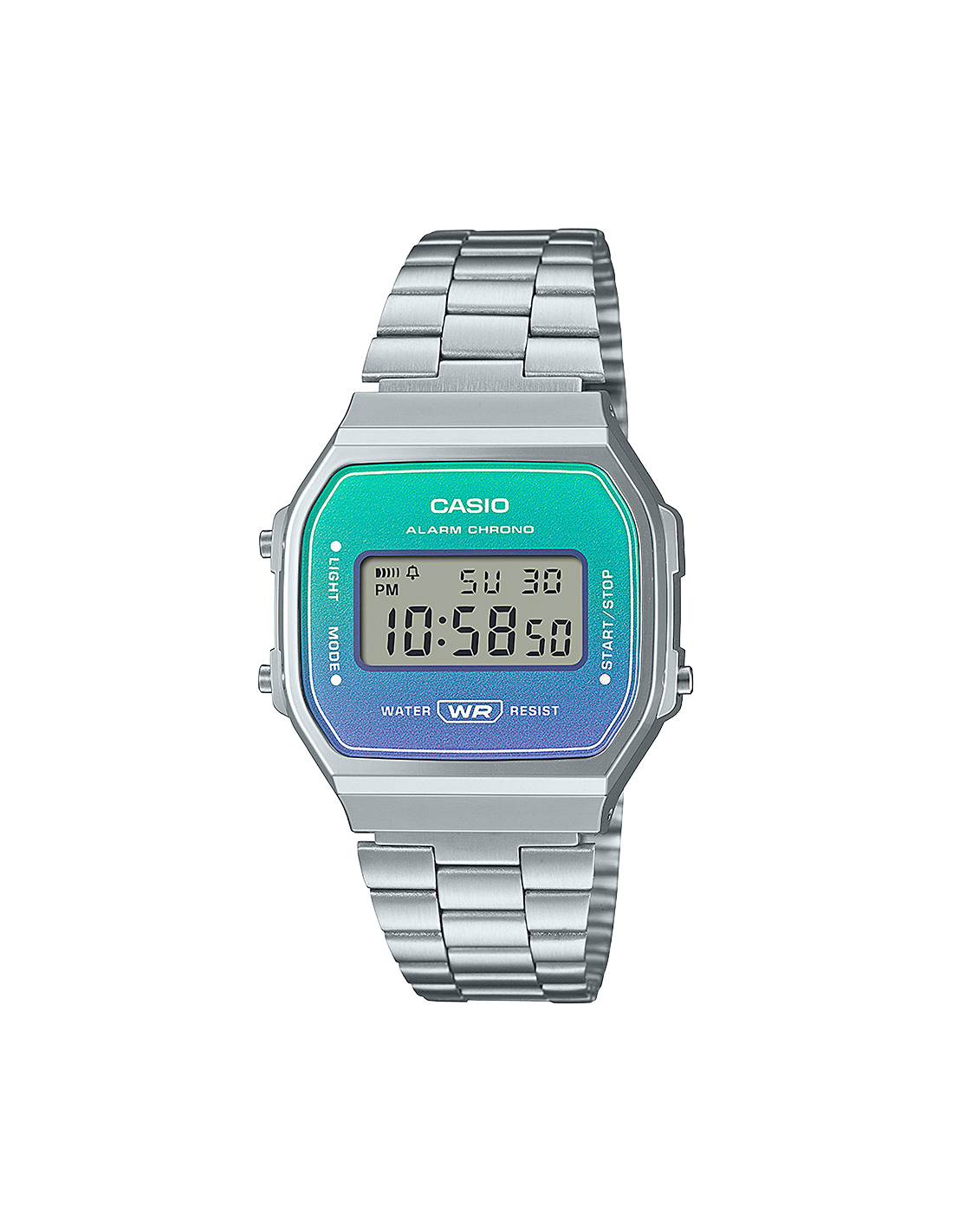 RELOJ CASIO VINTAGE DIGITAL PLATEADO RESISTENTE AL AGUA.