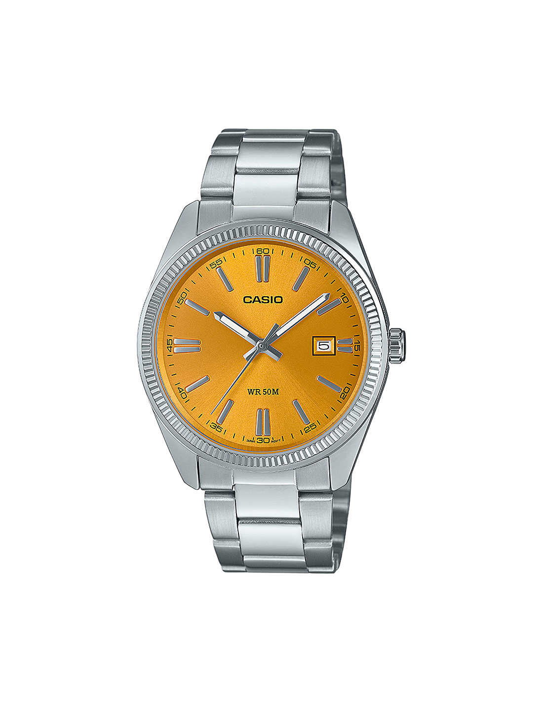 RELOJ CASIO ANALOGICO PARA HOMBRE Y ESFERA AMARILLA RESISTENTE AL AGUA