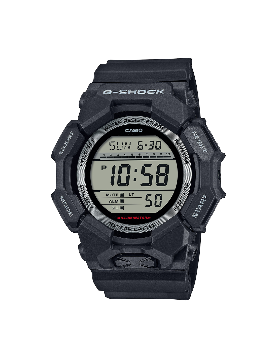 Cronómetro de 1/100 segundos Capacidad de medición: 23:59'59,99'' Modos de medición: Tiempo transcurrido, fracción de tiempo y tiempo del primer y segundo puesto