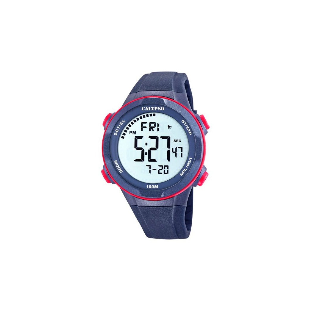 RELOJ CALYPSO DIGITAL AZUL/ROJO RESISTENTE AL AGUA 100 METROS.