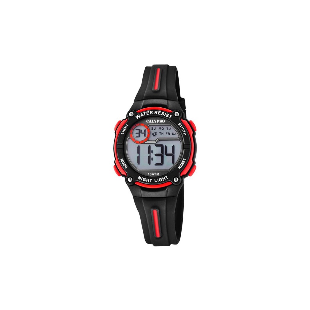 RELOJ CALYPSO DIGITAL NEGRO/ROJO RESISTENTE AL AGUA 100 METROS.