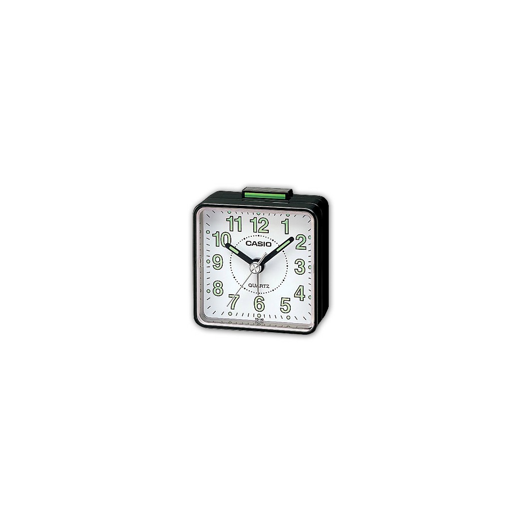 DESPERTADOR CASIO TQ-140 EN COLOR NEGRO FONDO BLANCO.