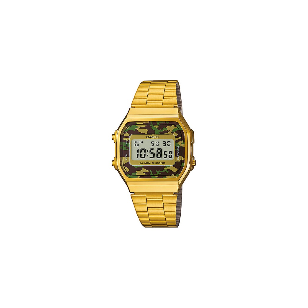 RELOJ CASIO VINTAGE DIGITAL DORADO CAMUFLAJE RESISTENTE AL AGUA.