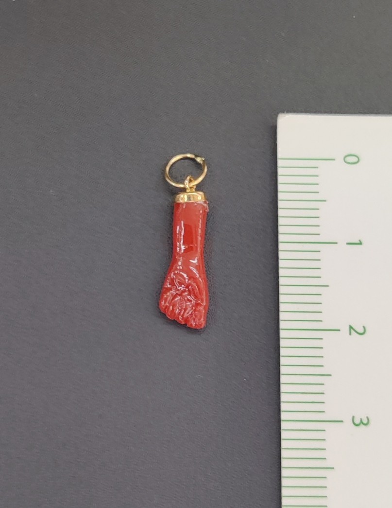 COLGANTE ORO 18 KILATES PUÑO ROJO.