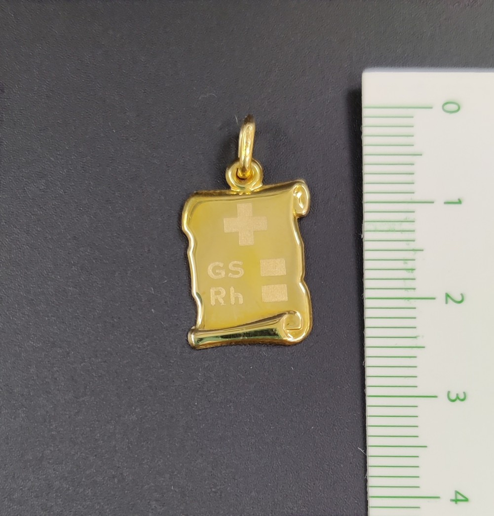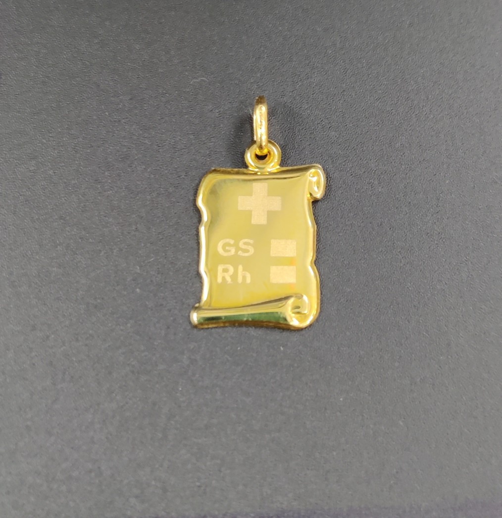 PERGAMINO ORO 18 KILATES GRUPO SANGUÍNEO.